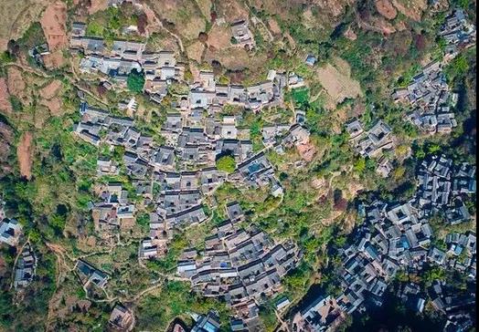 諾鄧村地處深山,最高處的玉皇閣,海拔達(dá)2300米。全村除了東面山麓“龍王廟”后面有一小塊較平坦的臺(tái)地外,所有的民居幾乎都建在山坡上。從山頂?shù)缴侥_,層層疊疊的房子就像掛在半空中一樣。