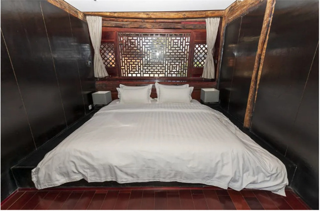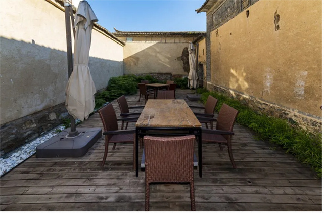 斑駁的土墻,雕花的格子窗戶,還有屏風(fēng)、木柱、油紙傘等多種古典物件與空間融為一體,天谷喜院的16間房,最大限度地保留原有構(gòu)架,演繹著端莊風(fēng)華、清雅風(fēng)韻的古典美。