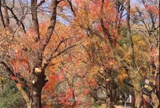 進(jìn)入寒冬,鶴慶西龍?zhí)兜暮蠚g、黃連木等上百株古樹迎來了最美的時(shí)刻,色彩斑斕的樹葉像是畫家筆下的調(diào)色板,風(fēng)吹過,彩葉緩緩落地,鋪下一地燦爛,成了冬日里一抹獨(dú)特的風(fēng)景。