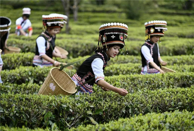 在這里,天空很近,滿眼青翠,空氣都帶著沁人心脾的綠。那一丘接一丘、一嶺接一嶺的茶園,美如眉黛,層次分明地從腳下一直延伸到天邊,最后消失在蒼穹的盡頭。