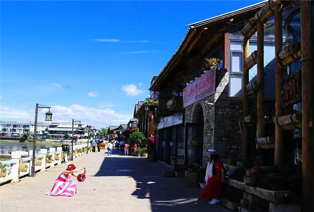 民族文化街橫貫集鎮(zhèn)南北,由長約三公里的主街道和數(shù)十條小巷道組合成魚骨造型,以白族民居建筑為主,沿襲了傳統(tǒng)的白族建筑藝術(shù)風格,并把傳統(tǒng)建筑藝術(shù)與現(xiàn)代建筑藝術(shù)風格融合,尤以雕塑彩繪及青瓦、灰墻、淡墨畫和三坊一照壁的建筑結(jié)構(gòu)形式為主,體現(xiàn)出古樸、優(yōu)雅、淳厚的民族風格。