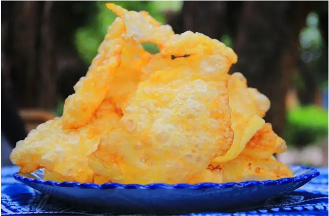 油炸乳扇是大理白族人家最常見的吃法,擺宴設(shè)席通常都有油炸乳扇這道小吃。
