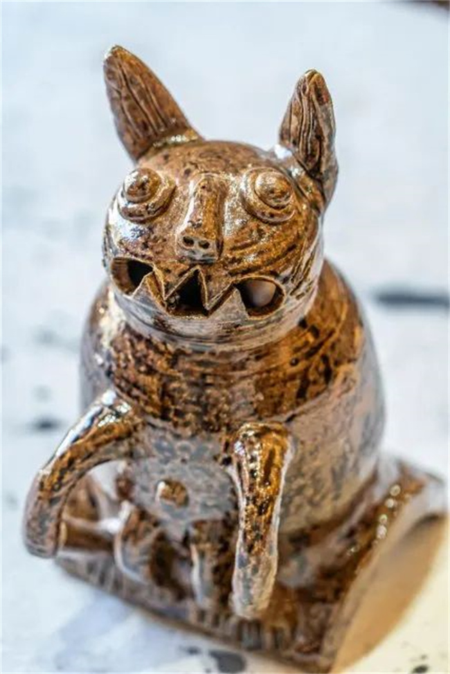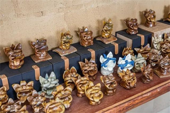 一套套流光溢彩的茶具,一排排憨態(tài)可掬的瓦貓,一個個造型獨特的獨角獸,在陽光下看去,顏色如漸變一般深淺不一,散發(fā)出金屬般的光澤,喜歡就去鳳儀鎮(zhèn)敬天村收藏一只吧!