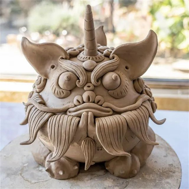 現(xiàn)如今,除茶具外,董建華還嘗試了文創(chuàng)產(chǎn)品的制作,其中以瓦貓最為獨特。他設(shè)計的瓦貓,大耳朵、大嘴巴,圓眼睛笑瞇瞇的,造型憨態(tài)可掬,和傳統(tǒng)瓦貓大不相同。還有胖乎乎、圓滾滾的獨角獸,讓人見之心喜。