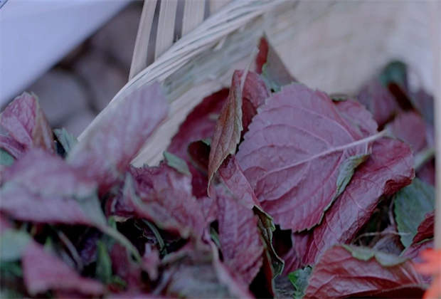 在紫蘇葉層層包裹下