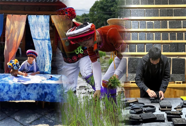國(guó)家級(jí)非物質(zhì)文化遺產(chǎn)扎染、省級(jí)非物質(zhì)文化遺產(chǎn)栽秧會(huì)、州級(jí)非物質(zhì)文化遺產(chǎn)甲馬等非遺項(xiàng)目在這里聚集,千年底蘊(yùn)與時(shí)代潮汐碰撞融匯,呈現(xiàn)出斑斕多姿、別具一格的文化魅力。