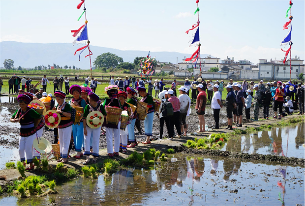 每年春夏之交的栽秧時(shí)節(jié),白族群眾都要舉行栽秧會(huì),祈愿風(fēng)調(diào)雨順、五谷豐登。喜洲一帶的栽秧會(huì)尤為隆重,是當(dāng)?shù)刈罹叽硇缘霓r(nóng)耕文化活動(dòng),保留著古樸完整的儀式感。