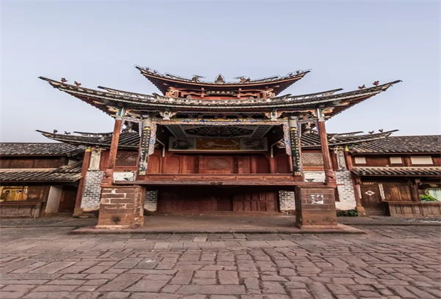 古戲臺也是寺登四方街上最有特色的建筑,戲臺帶有魁閣,建于清嘉慶年間,后面經過五次修繕。