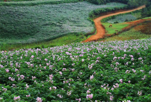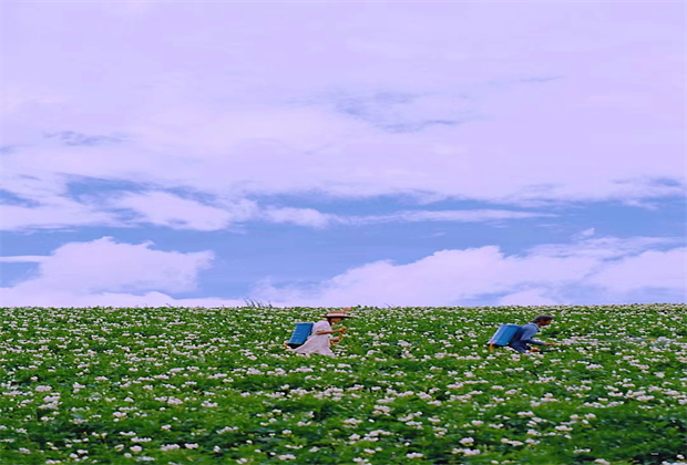 只是無意走了一條沒有走過的路,便見到了大理夏天的美,漫山遍野的洋芋(土豆)花,白的紫的,競相盛開,朵朵簇擁在枝頭,猶如一串串小風鈴,微風輕撫過花朵,仿佛能聽見悅耳的笑聲,站在高處放眼望去,風兒吹過,白色的花兒輕輕搖擺,在綠海中顯得格外清新,路邊的阿叔說,土豆花還沒到最盛的時候,沒全盛開就那么美,那全開的時候得有多美
