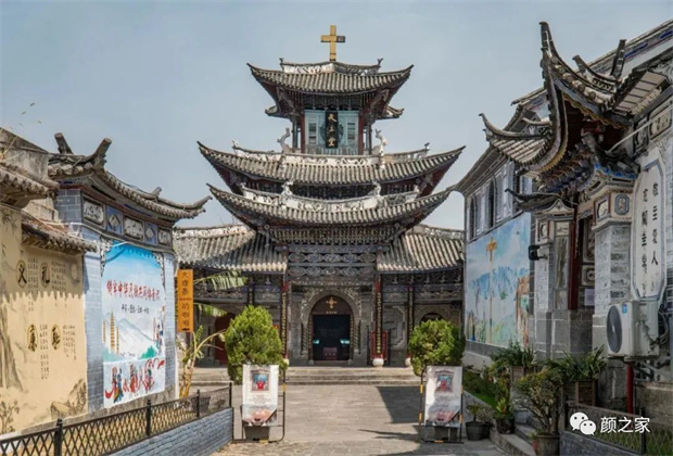 大理古城有一座中西結(jié)合式教堂,教堂主體外觀是白族建筑特色,內(nèi)部則是西歐教堂的風(fēng)格。