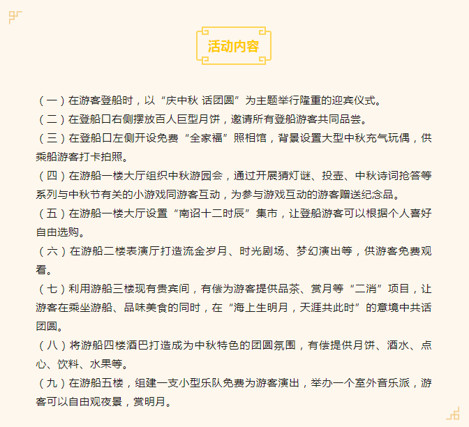 在這一天,以月為媒,家人團聚共度佳節(jié)。洱海游船分公司借此佳節(jié)良辰之際,開展“夢幻中秋夜 光影全家?!?/span>