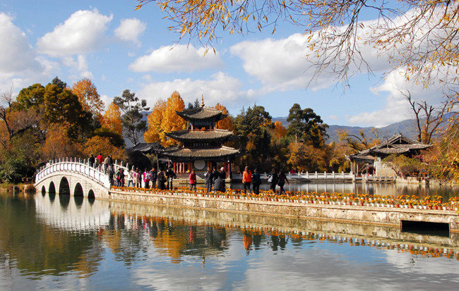 早7點30左右出發(fā),游候鳥的天堂拉市海(約120分鐘),拉市海水草肥美,湖色優(yōu)美,被譽(yù)為生命的搖籃,是美國大自然保護(hù)協(xié)會基地;游覽納西族的東巴圣地—東巴大峽谷(約50分鐘);游世界文化遺產(chǎn)麗江古城,四方街(約60分鐘),領(lǐng)略“形如官印,權(quán)鎮(zhèn)四方”的大研古鎮(zhèn)之“家家門前有流水,戶戶垂楊賽江南”的古城風(fēng)韻;游以其天生麗質(zhì),名列《中國名泉》、《中國風(fēng)景名勝》等書的黑龍?zhí)叮s60分鐘)。晚可自愿自費欣賞名族特色大型歌舞麗水金沙。