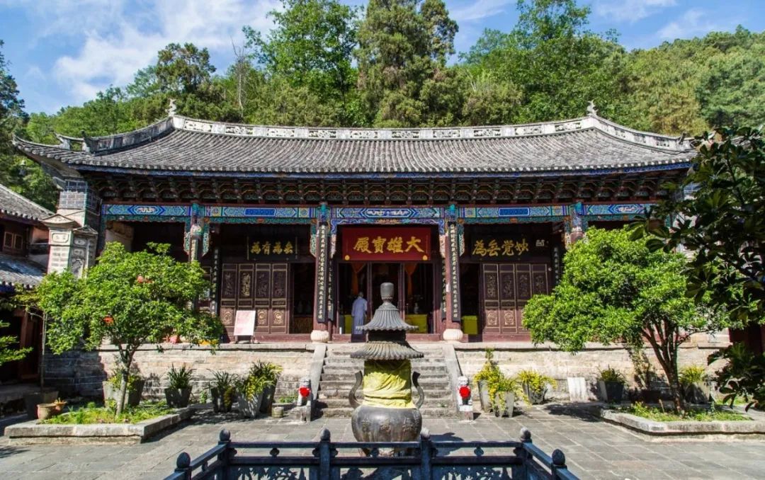 無為寺的歷史可以追溯至唐貞元九年,由西天竺僧贊陀崛多創(chuàng)立。這位來自天竺的僧侶,在南詔時期結茅修行于蘭峰下的閣老崖,成為觀音菩薩因地修行之所。贊陀因其深厚的道行,迅速得到南詔國王羅鳳的崇敬,并被冊封為國師。鳳歿后,弟子異牟訓于貞觀九年擴建了寺廟,為供養(yǎng)贊陀修行弘法。這是無為寺建立的源頭,其名字則來自觀音菩薩的一偈:“有為無為,有岸無岸,身居龍淵,心達彼岸”。大理國時期,無為寺威風不減當年,成為國王聽經(jīng)聞法、王室子弟習文練舞的圣地。大理國的22位帝王中有10位在此出家,而其他15位皇族子弟也加入了無為寺。在《天龍八部》中,歷史上出家于無為寺的知名人物段譽成為傳說,進一步增添了這座寺廟的神秘色彩。