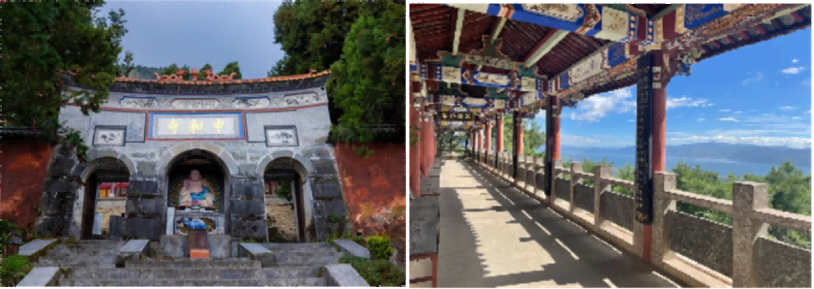 中和索道是路途最短,最為幽靜的一條線路,卻也最為驚險刺激,敞篷小纜車,一路感受林海濤濤,山風佛面。中和索道盡頭位于“中和寺”所以得名“中和索道”。這一條索道不同于感通索道和洗馬潭大索道,因為中和索道的轎廂不是全封閉式的,而是兩人座開放式索道,可以很直觀的感受到空氣中的涼意和懸空的感覺。因為是開放式露天吊籃索道,坐在索道上可以將大理洱海和蒼山間的這一片空地上的布局瞧得一清二楚,加上路程短,所以這一條索道可風雨無阻的體驗蒼山美景。中和索道除了索道上可以觀賞美景,在索道的盡頭還有一座在大理很有名的寺院——中和寺,它位于蒼山十九峰的中心山峰山上。中和寺地處蒼山中和峰東麓,擁有得天獨厚的自然風光和地理位置,寺廟依蒼山山勢而建,四周蒼翠蔥郁,松林環(huán)繞,身處其中能感受到大自然的靜謐和諧,與道教追求人與自然和諧相處的理念相得益彰。中和寺看似不起眼,但是它的歷史文化非常悠久,它的源頭可以追溯到唐代的南詔國時期(公元738年~902年),經歷了多個朝代的修葺與重建,明代嘉靖年間曾得到大規(guī)模修繕,在清代受到官方高度重視,清朝康熙皇帝曾為中和寺題寫了“滇云拱極”的御賜匾額,進一步提升了中和寺在大理乃至整個中原地區(qū)的文化地位和社會影響力。不幸的是,在清咸豐年間寺廟遭受了嚴重破壞,后來在光緒年間又進行了重修?,F(xiàn)保護下來的凌霄寶殿、正大殿和聚仙樓依舊保持著清光緒二十六年重修中和寺時的建筑風格。