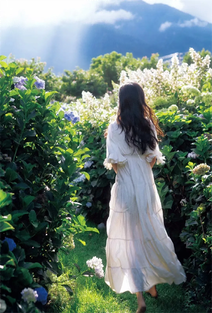 - 穿上白色或淺色系的服裝,與藍天白云和鮮花綠植相得益彰。