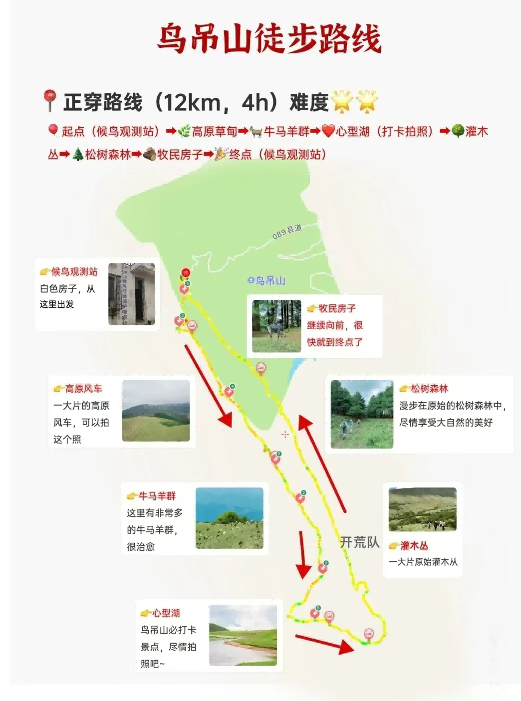 草甸、森林、野花,牛羊、馬匹、山巒,溪水、湖泊、藍天云霧…還有,野生菌、松子、刺果…它們,裝點了鳥吊山的夏天和秋天,也把徒步、旅游愛好者不遠千里吸引而來。鳥吊山,位于大理洱源鳳羽壩子西部,屬于云嶺山脈羅坪山的主峰,最高海拔約3400余米。被大家稱為“大理的阿勒泰”,這是一條集高山,草甸,湖泊,溪流,叢林。森林于一體的徒步線路,全程13公里,海拔3242m,走走玩玩大概6個小時左右可以往返。因為鳥類遷徙的時候容易在山口迷途,古時有點火引路,但仍有部分候鳥趨光掉落的情況,仿佛追懷同伴,被人們稱為了“鳥吊山”。