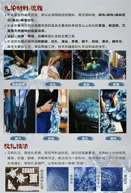 扎染的制作過(guò)程復(fù)雜而精細(xì),主要分為以下幾個(gè)步驟:
