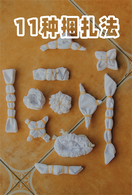 ②絞染:通過(guò)紗、線、繩等工具,對(duì)織物進(jìn)行扎、縫、縛、夾等多種形式組合后形成自己想要的花色。