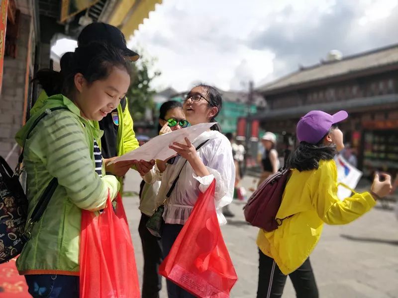 行程第二天:同學(xué)們來到了大理古城,進(jìn)行古城巡禮活動(dòng)。一張大理手繪地圖指引著同學(xué)們前行,對地圖上的任務(wù)點(diǎn)“文廟”、“武廟”做了深度探索。在任務(wù)卡的指引下,同學(xué)們對大理古城的本地居民、商戶、游客做了采訪,讓他們寫下祝福的話語,并錄制了采訪視頻。吃過晚飯后,在美麗的夕陽下,同學(xué)在導(dǎo)師的組織下,對今天下午的活動(dòng)進(jìn)行研學(xué)總結(jié)與分享。大家都興致勃勃的講述著大理·麗江研學(xué)之旅當(dāng)天的所見所聞,以及自己的感悟想法。