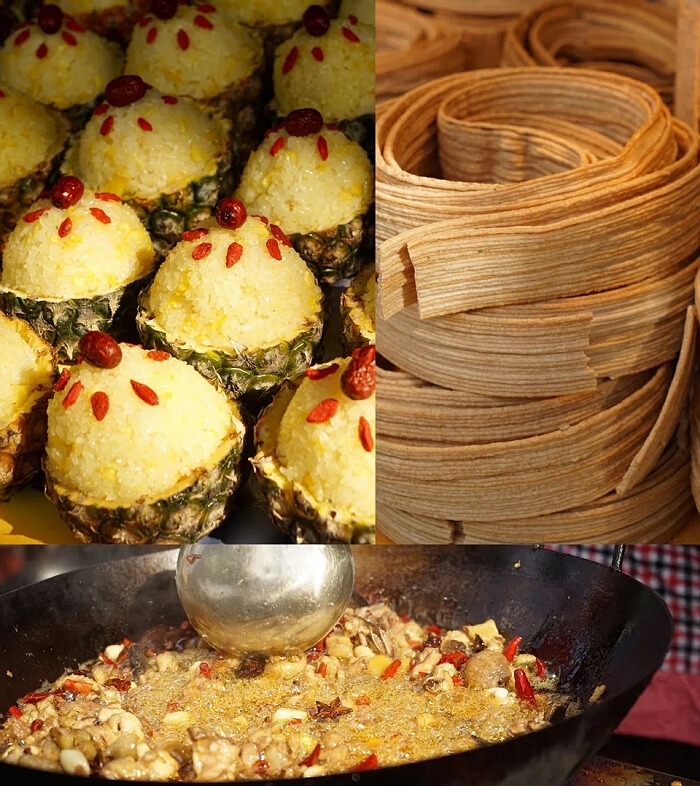 美味佳肴成為了三月街的一大特色:白族的三道茶、砂鍋魚頭、乳扇、酸木瓜炒雞、牛肉燒板栗、黃悶雞等臨時搭建的食館擠滿了來自各地的群眾。不得不提的還有酸、甜、咸味俱全的大理梅子:放著辣椒面腌制的酸而辣的腌梅、與泡透了的蠶豆一起煮燉的燉梅,經(jīng)過雕刻后加工而成的雕梅更像一個藝術(shù)品,含如嘴中,清香、脆甜、沁入肺腑。