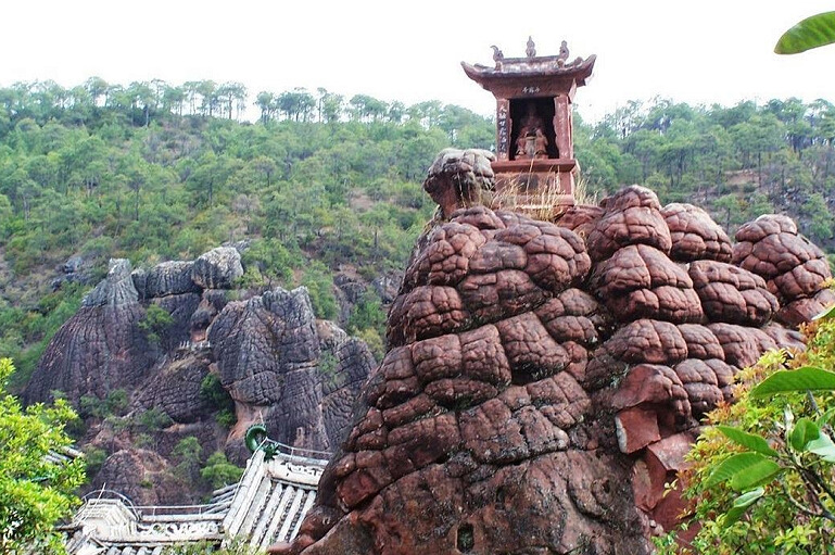 石寶山為丹霞地貌,球狀風化石形成的奇峰異石如鐘、如箭、如獅、如象,高者成崖,錯落有致,別具一格。