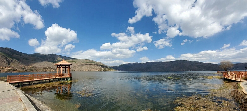 茈碧湖位于云南省大理洱源縣東北部,距洱源縣城約3公里,距大理以北73公里,距離劍川石寶山風(fēng)景區(qū)以南58公里。東、北靠山,西南連田,南北狹長,是高原斷陷溶蝕洼地形成的天然淡水湖泊,是洱海上游的主要湖泊之一,也是洱海的源頭了,鄧川壩子的灌溉水源主要靠它。