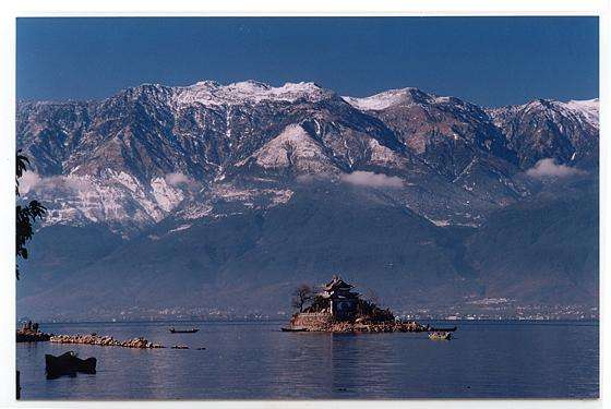讀盡秋季的風(fēng)云變幻,千古絕唱,讓我們回過(guò)頭來(lái),細(xì)細(xì)品味蒼山夏日的充沛與明朗。從洱海的西岸向東眺望雄性的莽莽蒼山,常常是在雨后初晴的時(shí)節(jié),碧空如洗甚或有彩虹飛架的時(shí)候,在蒼山的胸前,清新的翠綠顯出誘人的嫵媚,如果你恰好來(lái)到盈動(dòng)著的洱海水邊,我們會(huì)幸運(yùn)地見到,也是在蒼山雄渾的胸前,一條潔白的云帶在婀娜多姿地飄蕩開來(lái),幾乎糸住了曾經(jīng)奔放不羈的十九座偉大的山峰。玉帶云,我們身邊的云,我們頭頂上的云。而如果在此時(shí),你滿懷難以抑止的激情走入玉帶云中的玉帶路,伸手可捕捉縷縷云氣,你會(huì)發(fā)覺曾經(jīng)離我們?nèi)绱诉b遠(yuǎn)的美麗云霧,離我們又是這樣的親近。趁著這飄飄欲仙的感覺,輕輕地踏上浮云繚繞中的玉帶路吧,我們就此走入蒼山的深處,走入飄渺的云端,進(jìn)入清涼潔凈的天界。這里有飛瀑流泉之景,這里有曲徑通幽之境。而一旦云散天開,從云窗所透露出的天路之上,玉洱風(fēng)光一覽無(wú)余,只見湖岸美麗而樸實(shí)的村莊星羅棋布,陽(yáng)光將田野涂抹得一片絢爛,于是頓覺神清氣爽,眼界與胸襟大為開闊,我們似乎又找到了只有夢(mèng)中才有的迷人幻境。