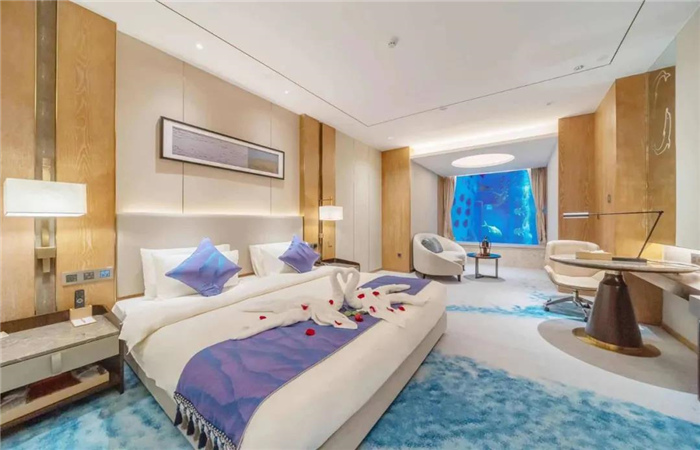 酒店位于云南省大理白族自治州海東大理海洋城,背靠大理首座海洋主題公園——大理海洋世界。酒店有23間海底景觀房,一、二、三層客房直接面向11000噸(水深11.5米)魚展池的水下景觀,四層可俯視壯觀的鯊魚池水面,可零距離觀賞千姿百態(tài)的遠(yuǎn)洋奇觀,可體驗(yàn)鯊魚池潛水、潛水培訓(xùn)、水下求婚及水下婚禮等特色服務(wù)項(xiàng)目。