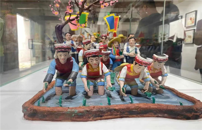 “秧之館”呈現(xiàn)的是一系列關(guān)于人的內(nèi)容。比如《開秧門》——喜洲最具代表性的農(nóng)耕文化活動。每年的插秧時(shí)節(jié),當(dāng)?shù)卮迕穸紩园l(fā)組織大型的開秧門儀式,從祭祀、游街、插秧到田間民樂、吃秧飯,整整一天的時(shí)間,僅儀仗隊(duì)伍就多達(dá)兩百多人。