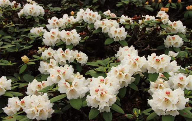 蒼山的杜鵑花品種多達(dá)30余種,每年春夏時(shí)節(jié),一株挨一株,一片接一片的杜鵑花競(jìng)相開放,從山腰直到海拔4100米的積雪地帶,再漫到蒼山西坡。