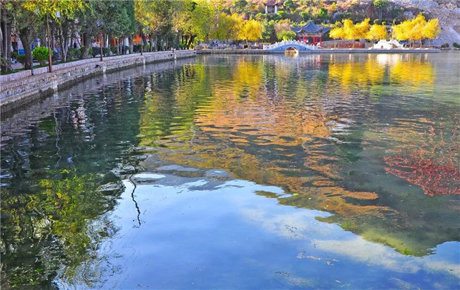 沿著溪流而行,龍?zhí)丁⑷坌橇_棋布,如顆顆寶石鑲嵌在鳳凰山下。一汪汪泉眼處,泉水從地下汩汩冒出,小錘敲打銀器的“叮當(dāng)”聲在耳邊緩緩流淌,如琴箏輕撥,如玉珠悄落,與水聲重疊相交。
