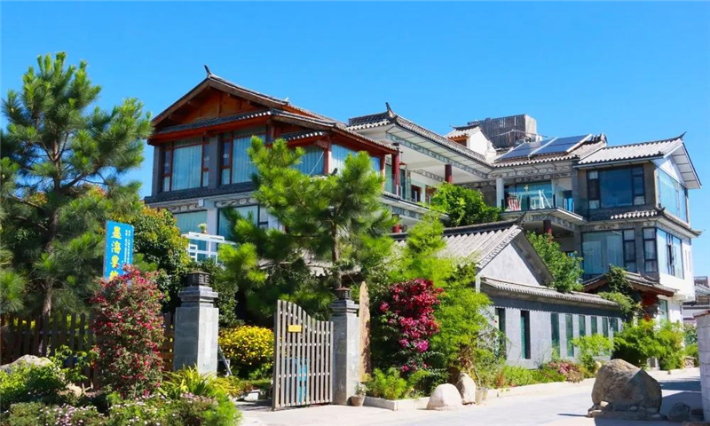 在大理龍龕龍下登村環(huán)海西路邊,有一家名叫“墨?!钡目蜅#瑪X取“蒼山不墨千秋畫,洱海無(wú)弦萬(wàn)古琴”的詩(shī)意,坐擁山海,青瓦白墻,古樹臨窗,與自然融為一體。