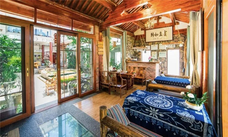 墨海客棧一共有14間房,每個(gè)房間的取名均來(lái)自蒼山十九峰和十八溪,比如“滄浪”“圣應(yīng)”“清碧”等,充滿了詩(shī)意。
