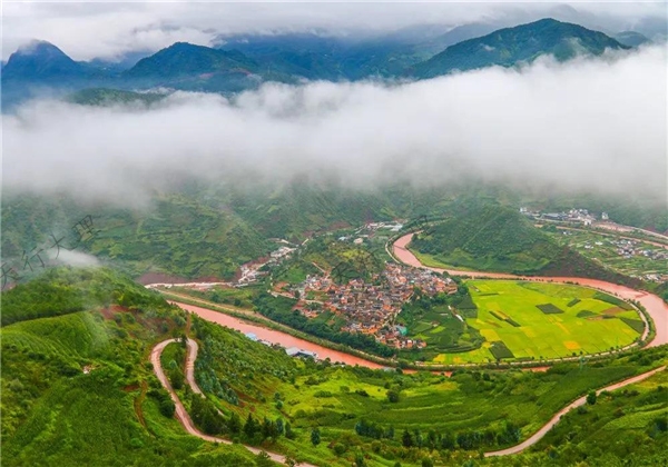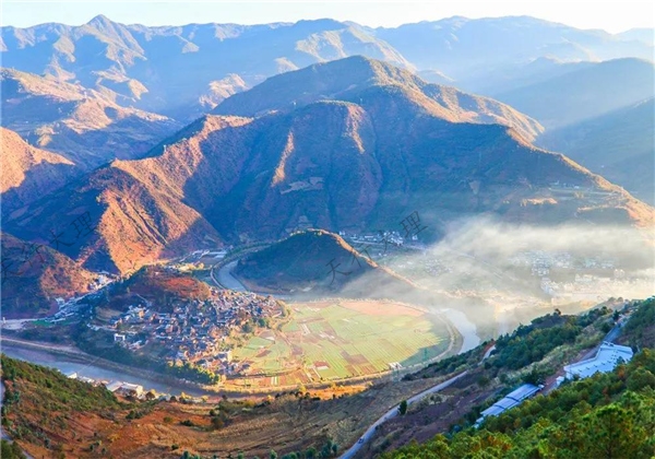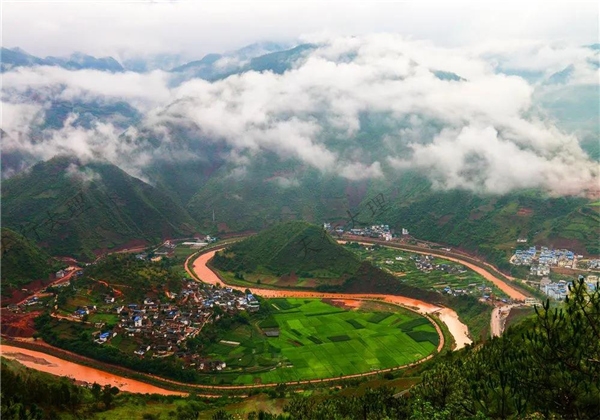 在云龍縣城北面,沘江蜿蜒而來,繞出了一個“S”型的水灣,構(gòu)成了一幅類似“太極圖”的天然地貌圖景,被譽為“世界奇觀,云龍?zhí)珮O”。