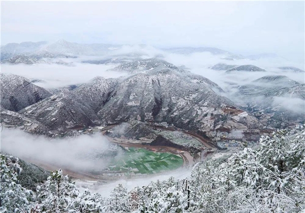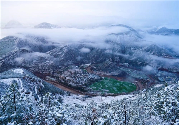 冬天,草木枯榮,水瘦山寒,太極圖更加輪廓分明。當(dāng)白雪皚皚之際,銀裝素裹的太極圖呈現(xiàn)出了一種蒼茫遼闊的壯美,雄奇瑰麗。