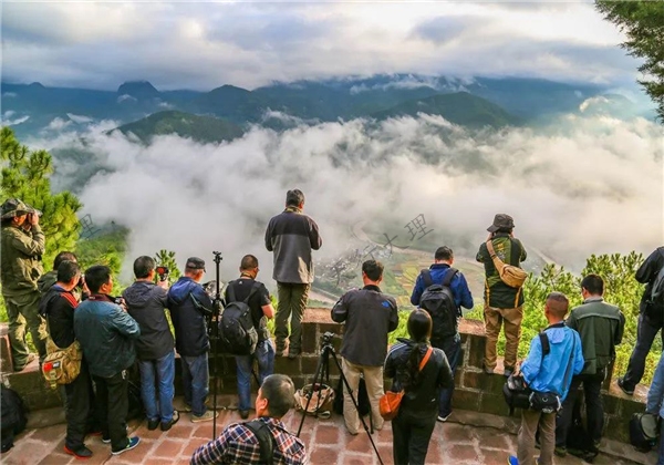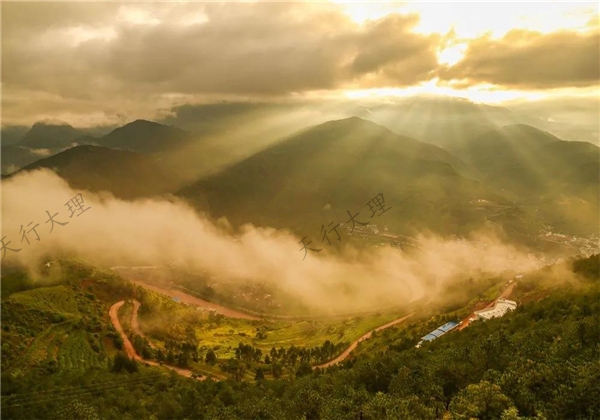 站在沘江西面山中向下俯瞰,厚厚的云霧彌漫百里,滔滔云海與初升紅日同輝,村莊、農(nóng)田、群山……猶如置身仙境,一切都似真似幻。