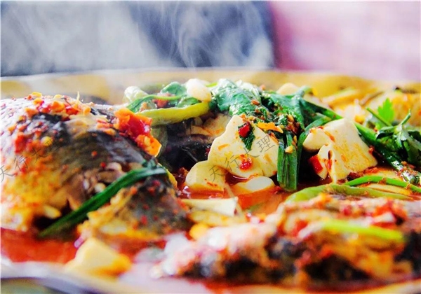 劍川待客的八大碗中,其中一碗就是人們喜愛的粉蒸魚。粉蒸魚有八塊,以酸腌菜墊底,色澤鮮艷,味道香辣,寓意著豐衣足食,年年有余。