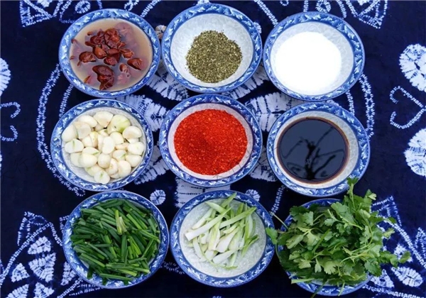 以酸精(檸檬精)、紅辣椒面、青蒜苗、草果粉、洋芋等為主要原料,海稍魚采用獨特的烹飪技藝加工而成。