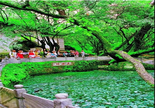 “蝶泉之美在于綠。”蝴蝶泉四周古樹參天,綠樹成蔭。樹蔭之下,遍布山茶、杜鵑、曼陀羅、月月紅等奇花異卉。