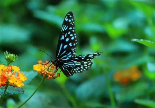 次日,鄉(xiāng)親們在潭水中沒有打撈到兩人的遺體,卻看到潭底飛出兩只鮮艷美麗的蝴蝶。蝴蝶形影不離,翩躚起舞,引得無數(shù)色彩斑斕的蝴蝶從四面八方匯聚而來。