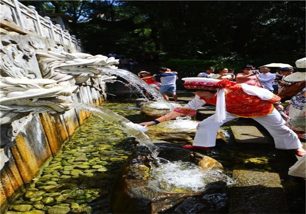 蝴蝶泉的下方是“五龍池”。五龍池的水,被視作忠貞愛情的象征;在“五龍吐水”的龍頭下洗手,可把幸福、吉祥帶回家。