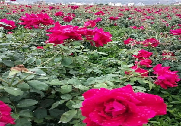 陽光照耀在玫瑰花上,發(fā)出耀眼的光芒,向四面八方發(fā)散,將天地照亮。面對(duì)如此壯闊的玫瑰花海,不由得讓人心中發(fā)出由衷的贊嘆:從沒見過如此大面積的玫瑰紅,從沒有見過如此深顏色的玫瑰紅,從沒有見過如此跌宕起伏的玫瑰紅。如此跌宕起伏的玫瑰紅可以從4月初一直到12月。