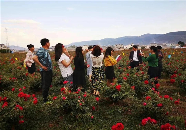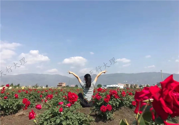 翻過定西嶺,站在后山坡,放眼彌渡壩,錦緞般的紅色彌漫150平方公里的彌渡壩子,整個(gè)彌渡壩一片紅彤彤。從坐落在紅巖赤水村的天天玫瑰園,到七彩云花玫瑰花莊園,再到賴龍食用玫瑰園等,成百上千畝規(guī)?;倒鍒@里的玫瑰花競(jìng)相綻放,染紅了山嶺,染紅了村莊,染紅了大地。
