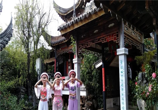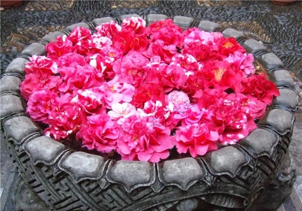 三是大理獨(dú)有的“飄花”景觀,張家花園還有50畝茶花基地,三天一次,由花匠在清晨采摘茶花,飄到各種瓷盆、石缸的水中,供游客觀賞,別有情趣。