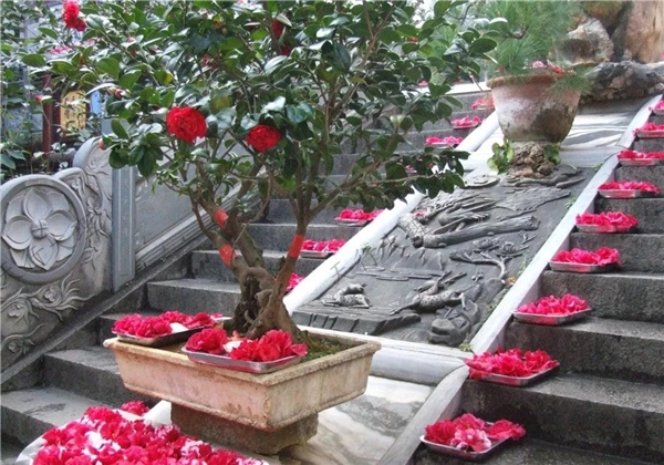 還有飄在水中的茶花,仿佛水也是紅的,一盆盆一缸缸艷美,不像在腳下,倒像在心底,看久了心事都會(huì)看化。按張家花園的傳統(tǒng),飄過(guò)三天,那些茶花就會(huì)變成花肥,綻放在次年春天枝頭,而這一季的盛放中,仍有上一年的落紅藏底,如此落落開開,年復(fù)一年。