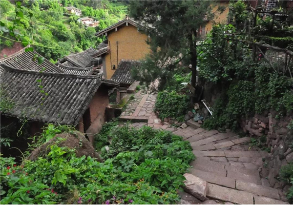諾鄧河?xùn)|一帶地勢稍緩,民居宅院相對寬平完整。古文曾描繪諾鄧村:“崇山環(huán)抱,諾水當前,箐簧密植,煙火百家,皆依山構(gòu)舍,高低起伏”。