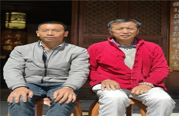 車玉江1960年出生于劍川縣甸南鎮(zhèn)發(fā)達(dá)河村,隔他家?guī)装倜椎臈畋屑?,在上世紀(jì)70年代前后,將文革期間被毀的阿吒力儀軌全過程整理出來,車玉江最初是被隱隱傳來的阿吒力音樂所吸引,后來跟著楊炳列一家,鉆到啊吒力音樂里,最終在2008年成為第五代傳人,開始以大師父的身份帶領(lǐng)眾人從事各類阿吒力民俗活動,并于2019年被評為白族阿吒力民俗音樂省級非遺傳承人。