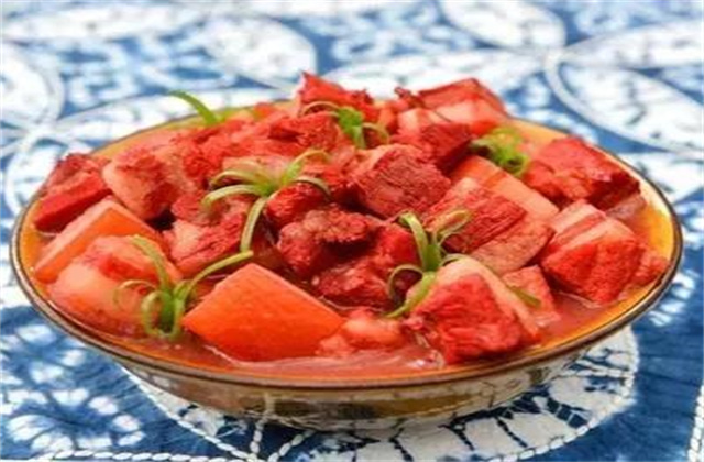 歲歲平安千張肉:制作時(shí)要將肉塊切成長長的簿片,象征人生道路平平坦坦,千歲平安。