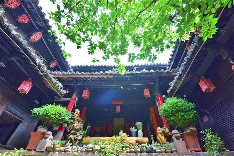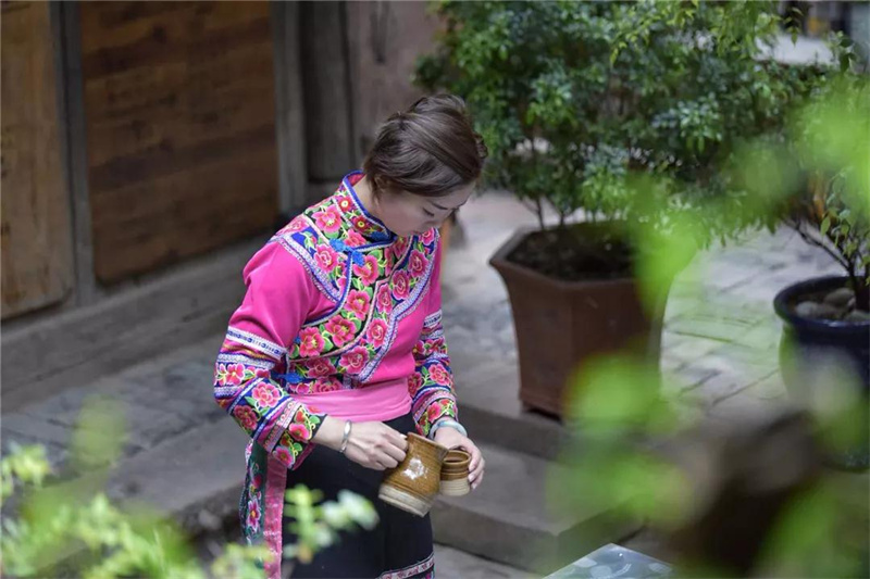 坐在大青樹(shù)小院里,圍著小木桌喝藥茶,有薄荷的清新,葛根的回味。正前面一個(gè)半圓型水缸,滿滿一缸水靜靜倒映著屋檐的瓦色。身后是一人多高的屋檐臺(tái),上面斜倚著一把躺椅,陽(yáng)光懶洋洋地堆疊在上面,那一坐,仿佛閉上眼就能恍然入夢(mèng)。