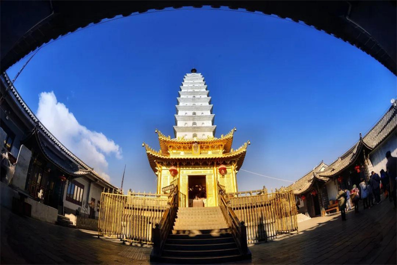 洗心橋,這是前往雞足山的必經(jīng)之路。從洗心橋上走過,洗盡鉛華,放下內(nèi)心的貪、嗔、癡、慢,駐足橋上,愜意悠悠,遠(yuǎn)眺金頂寶塔,盡收沙址田園風(fēng)光,怡然自得。